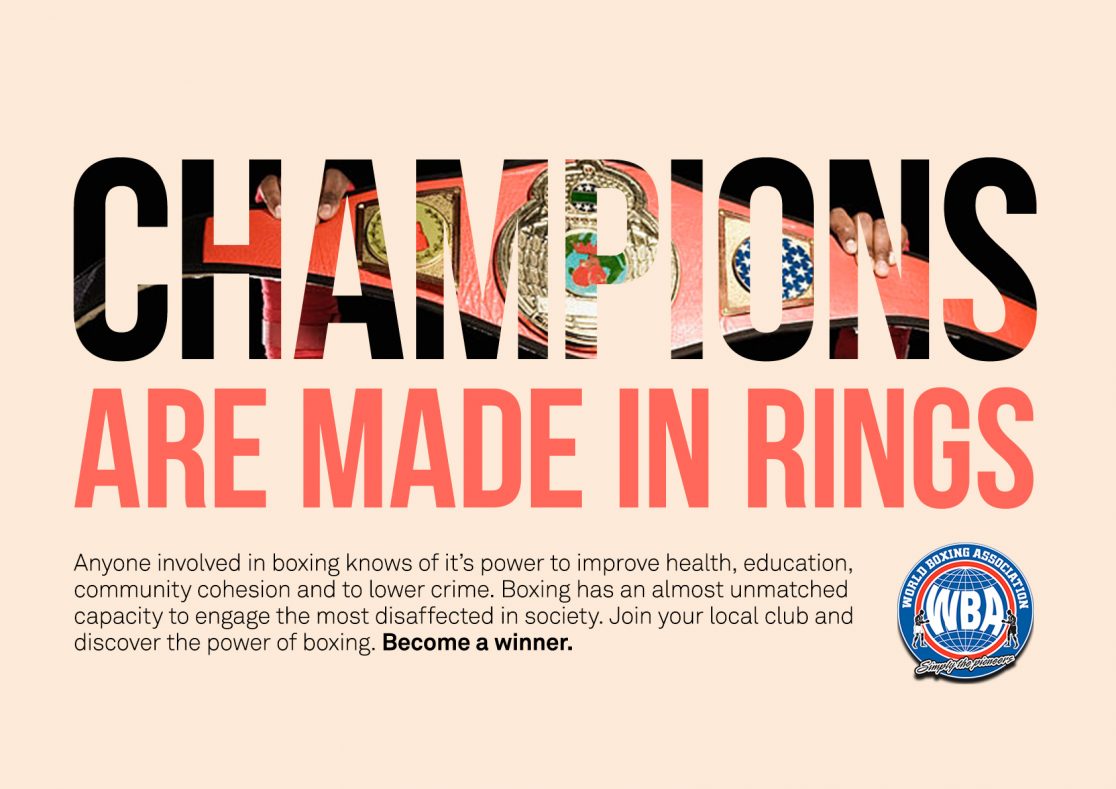 With concussion and other mental issues in the forefront of the news, the public opinion of boxing has started to change. Boxing is not as popular as it was. The aim was to create a hard hitting and emotional awareness campaign, for the World Boxing Association, on the benefits of boxing and why it has a place in modern society.