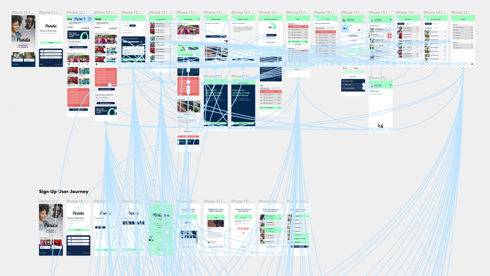A new philanthropic app called Pledge Panda needed a new brand image. A logo and style guide was created along with marketing collateral and templates for the client to go to market. The app was wireframed and designed with a strong focus on intuitive user journeys. Gamification elements were included in the design to future proof the product and keep people coming back for more.